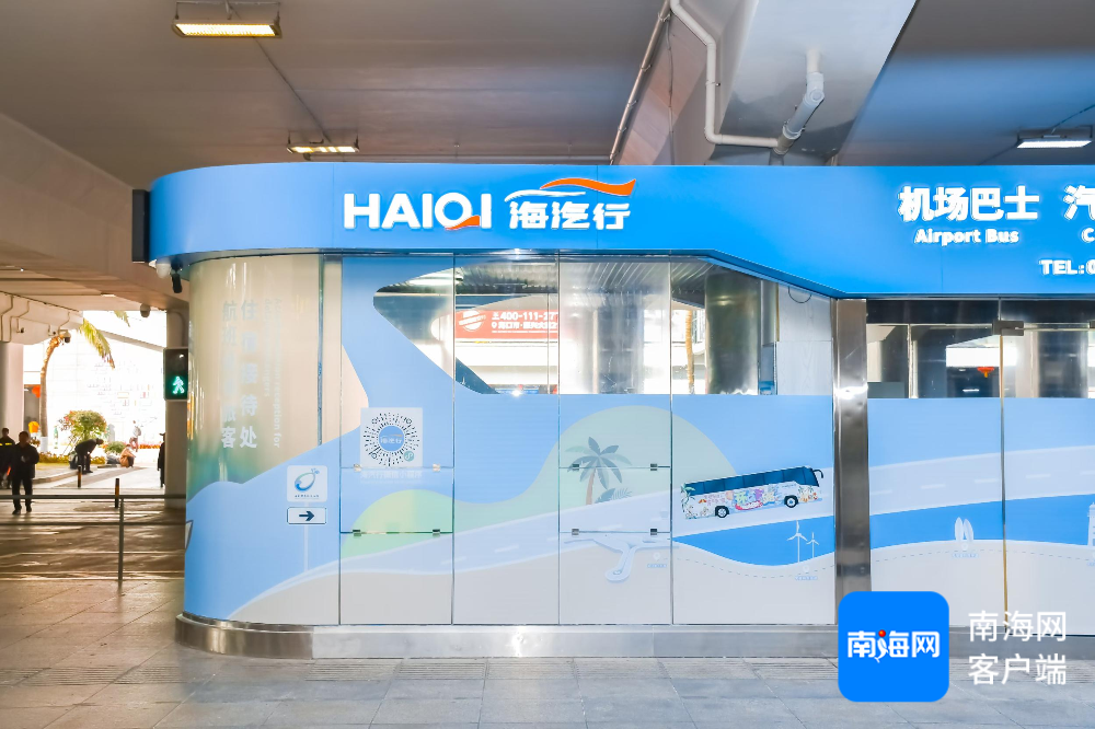 1月21日,??诿捞m機場到大廳外,一座形似旅游大巴車造型的“海汽行”美蘭機場售票亭正式啟用。